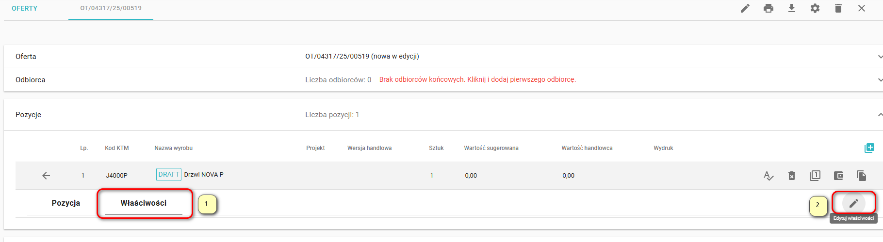 Po wybraniu konkretnego modelu zostanie on dodany do oferty. W celu edycji należy kliknąć na daną pozycję. Otworzy się okno edycji.